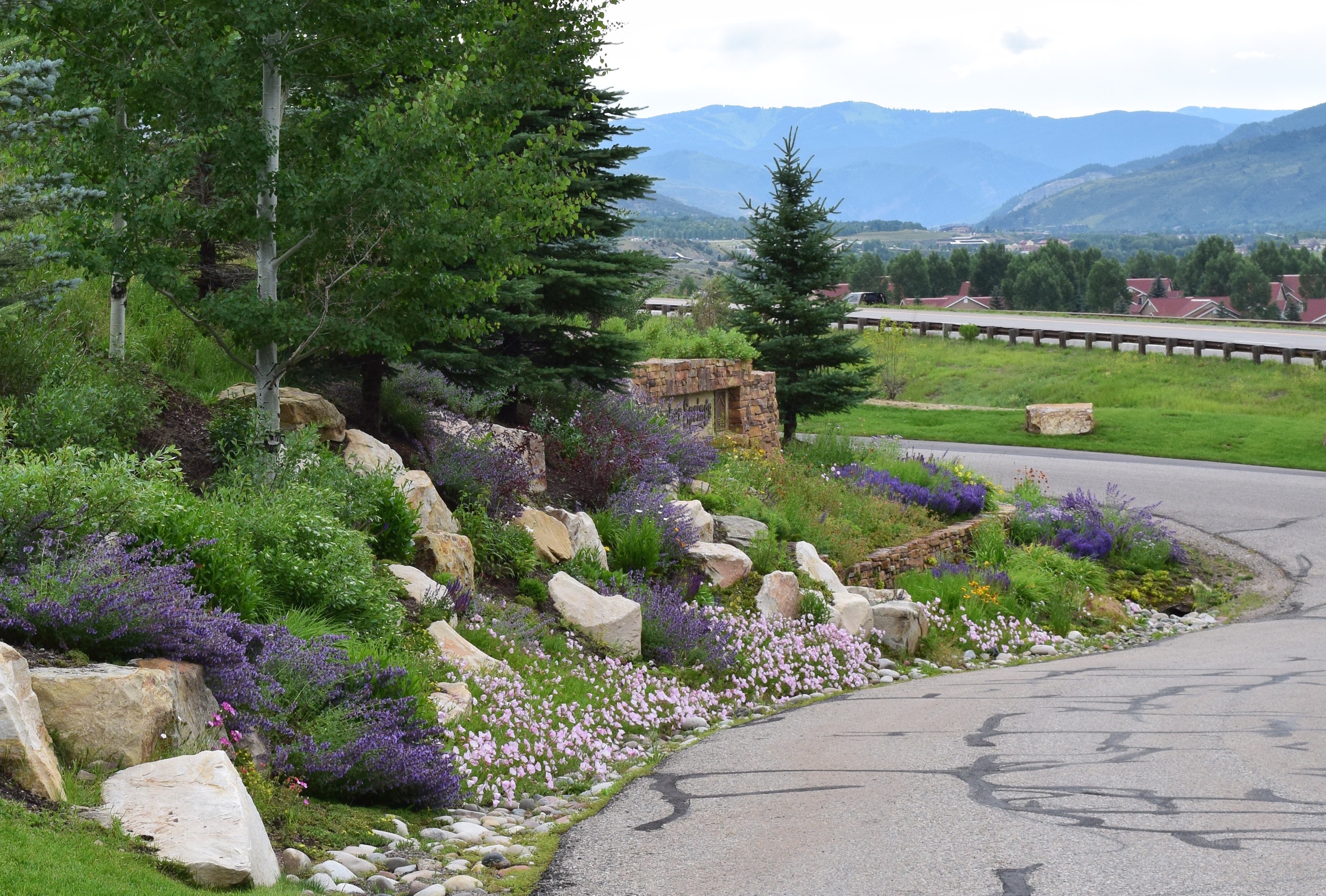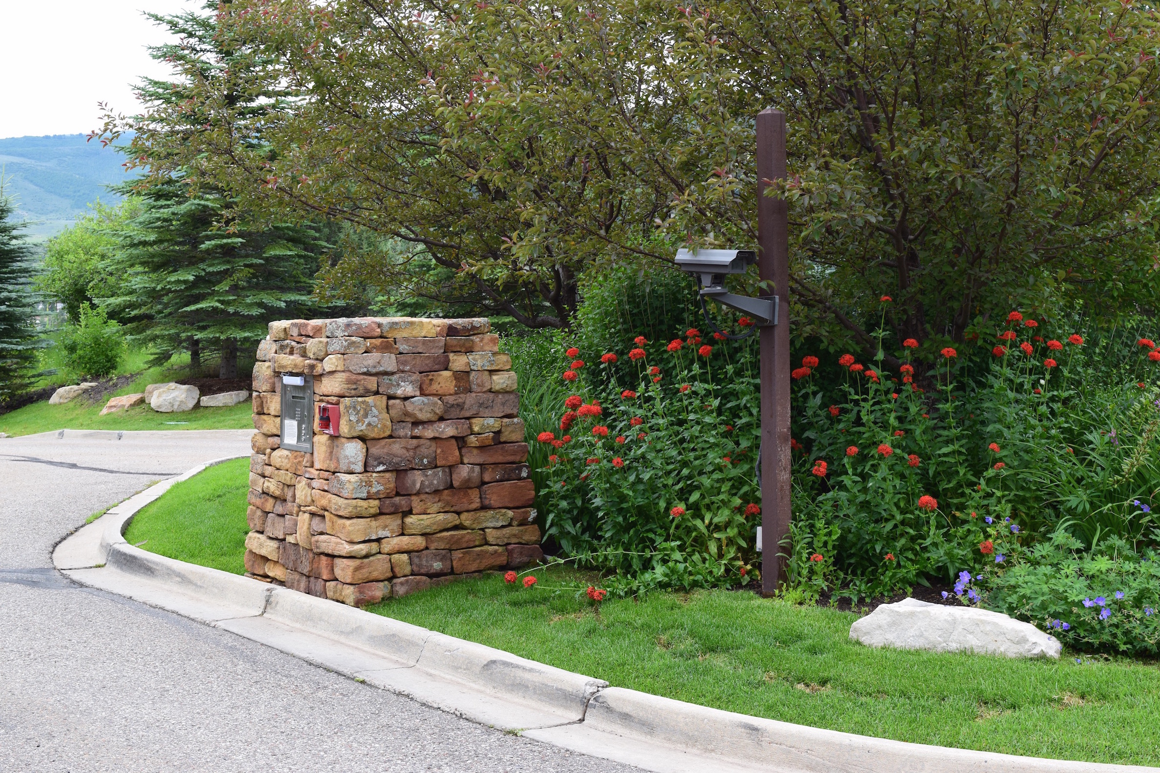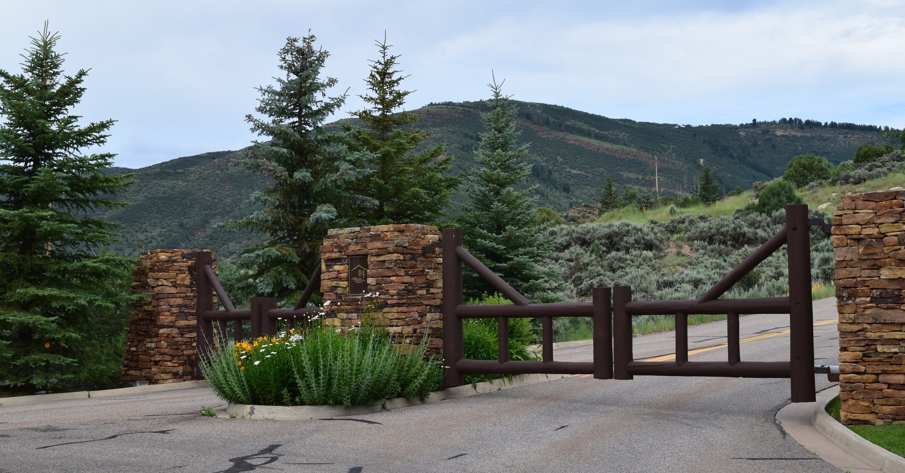 The owners of this exclusive development wanted a unique identity to their community which was a challenge since it was so closely associated with the Cordillera Valley Club. What we came up with was a stacked stone theme for the structures housing the entry gates and keypad with log gates. The secure gates had to have a turnaround for those without access to the community.